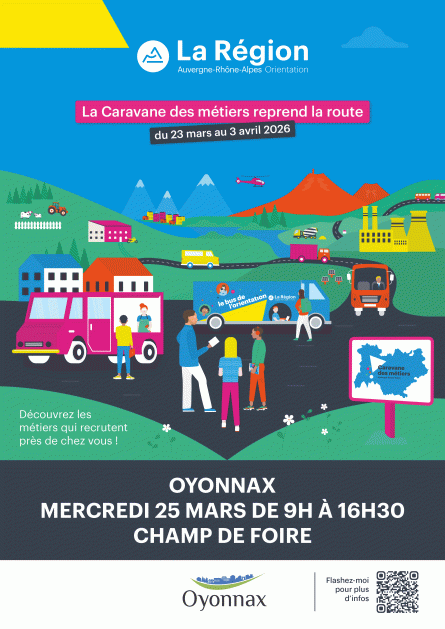 Dans le cadre de sa tournée régionale, la Caravane des Métiers fera halte à Oyonnax mercredi 25 mars lors de son édition 2026. Cette opération itinérante, portée par « Auvergne-Rhône-Alpes Orientation » et de nombreux partenaires, parcourra l’ensemble du territoire régional pour aller à la rencontre des jeunes, des familles, des demandeurs d’emploi et de toute personne en quête d’informations sur les métiers et les formations.